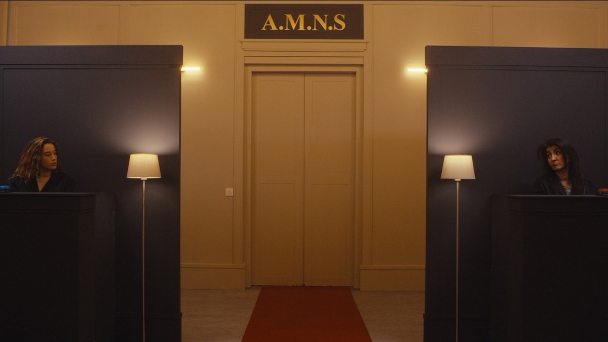 Deux femmes, l'une plus jeune et l'autre plus mûre, une grande pièce, deux comptoirs et une porte. En apparence, tout est très simple: tous ceux qui viennent sont attendus, inutile même de leur parler, un simple bouton sur lequel appuyer. Mais qu'y a-t-il derrière laporte que ces inconnus se pressent de franchir ?